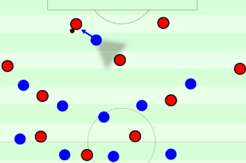 Il problema principale che il posizionamento sul lato cieco causa a un avversario è che essenzialmente richiede loro di dare priorità in termini di campo visivo. Con un giocatore posizionato sul lato cieco del loro avversario, lo costringono a scegliere tra essere in grado di vedere la palla o l’uomo. Se l’avversario difensivo sceglie di vedere esclusivamente il proprio avversario, il portatore di palla può muoversi con la palla e la situazione intorno a lui può cambiare abbastanza drasticamente nel momento in cui vede la palla la prossima volta. Ciò significa che la scelta del difensore di tenere d’occhio il proprio avversario potrebbe essere resa comunque inutile. L’alternativa, che consiste nel dare priorità alla visione della palla, significa che il giocatore sul lato cieco del difensore può allontanarsi potenzialmente senza opposizione, il che è quasi altrettanto pericoloso.